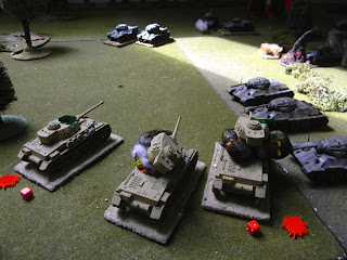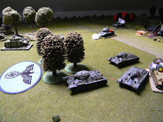 German armour makes use of the copse of trees as cover as other unspotted units reach the road